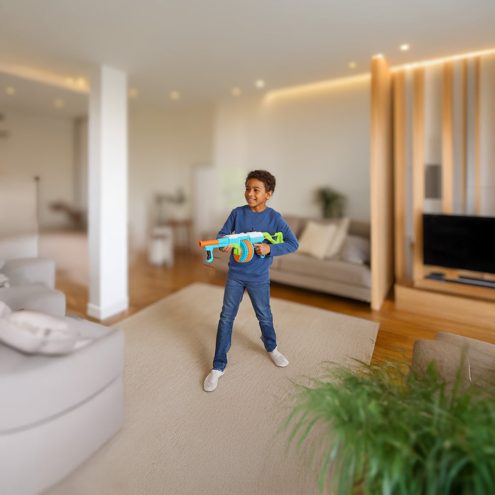 Load up and keep blasting — the massive 72-dart drum ensures you're always ready for the next round of action.