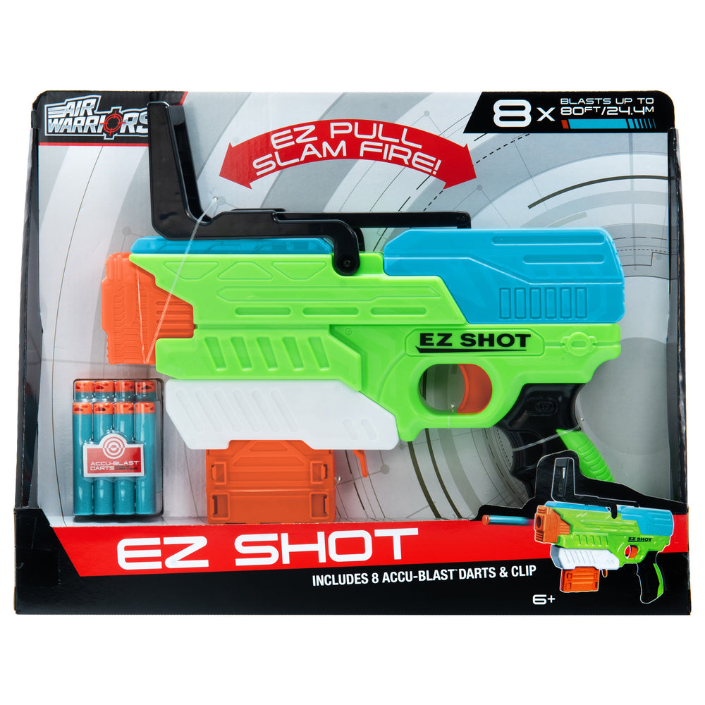 Fast-paced action meets simple lever-fire design with the Air Warriors EZ Shot Pistol Blaster. This dynamic dart blaster is perfect for kids and enthusiasts looking for high-performance blasting fun. With its EZ Pull Slam Fire Action, it delivers a smooth, responsive shooting experience that keeps you in control, shot after shot.