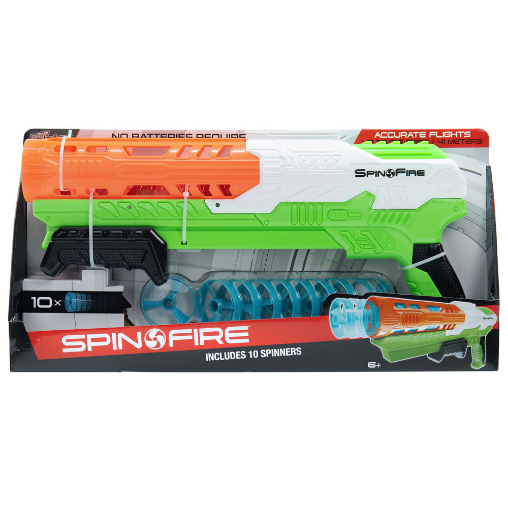 Launch into high-action fun with the Air Warriors SpinFire Extreme Distance Single-Spinner Rifle Blaster—built for serious distance and rapid-fire action.
