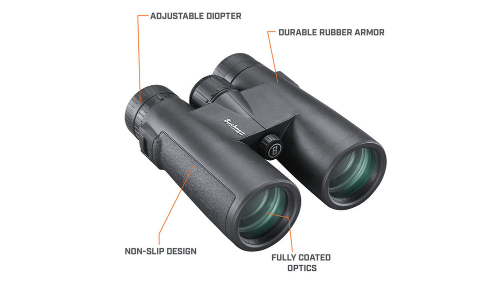 Bushnell® designed their All-Purpose™ Binoculars for hunters and shooters who value simplicity, stability, and results. All-Purpose binoculars feature multi-coated lenses and BaK-7 prisms for bright clear viewing. An ergonomic design and center focus wheel get you on target and fine-focused in an instant. Twist-up eye pieces accommodate eyeglass users. All-Purpose Binoculars are nitrogen-purged to resist fogging. Bushnell® designed their All-Purpose™ Binoculars for hunters and shooters who value simplicity, stability, and results. All-Purpose binoculars feature multi-coated lenses and BaK-7 prisms for bright clear viewing. An ergonomic design and center focus wheel get you on target and fine-focused in an instant. Twist-up eye pieces accommodate eyeglass users. All-Purpose Binoculars are nitrogen-purged to resist fogging.