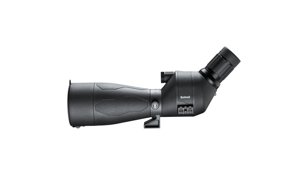 Featuring an 80mm objective lens with 20-60x magnification, the Bushnell Engage DX 20-60x80 Spotting Scope offers excellent image clarity in a lightweight 3.75-pound package. A durable aluminum chassis with rubber armor is designed to stand up to the toughest outdoor environments, letting you bring this hunting scope on any expedition with confidence. A conveniently angled eyepiece and rotating tripod collar ensure you can always find a comfortable viewing position.