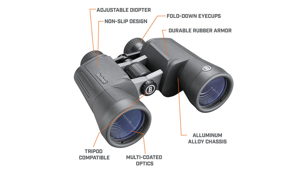 An all-metal chassis is the new PowerView 2’s foundation, and it’s never before been offered at this price. The all-metal chassis ensures ruggedness and durability in the harshest elements, meaning the chassis won’t crack in the extreme cold of winter, or disform in the intense heat of summer. The new metal body also eliminates uneven weight distribution often found in binoculars with plastic chassis. Multi-coated optics paired with a massive 50mm objective lens, brings in a large amount of light, providing vibrant images for a crisp, clear viewing experience. Updated ergonomics and a rich textured rubber armor guarantee you'll always have a firm grip, even in one hand.