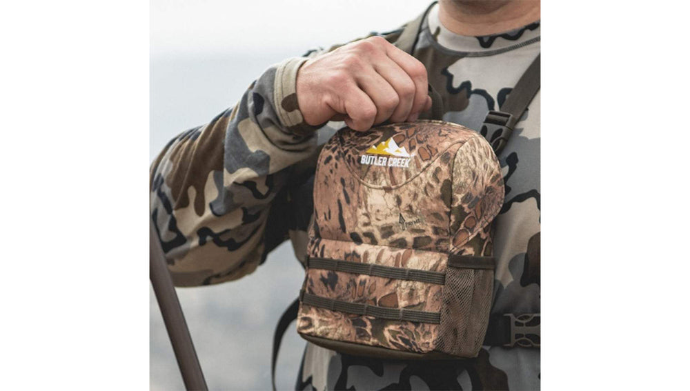 Based off our successful Bino Harness, the new Butler Creek Featherlight Bino Case allows quick one-handed access to your optics. Using strong magnets, the front lid folds down securely out of the way with another magnet allowing optics to be supported in the open reinforced pouch.