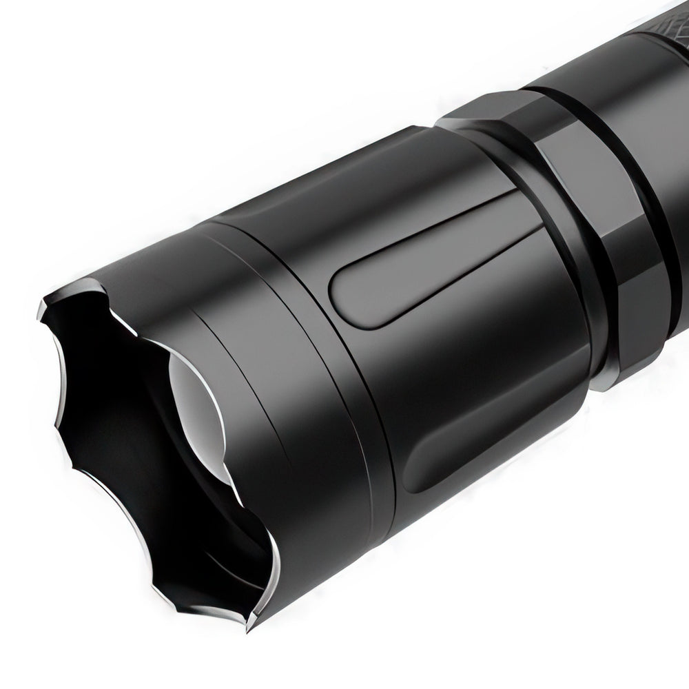 Constructed with a robust metal body complemented by highly resistant plastic components, this flashlight ensures durability in the harshest field conditions. Its adjustable beam angle, ranging from 6° to 35°, allows for tailored illumination, while the impressive 200-meter irradiation distance guarantees comprehensive coverage during nighttime operations.