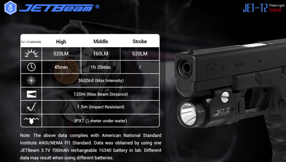 The T2 lightweight pistol light can neatly slides onto the underside of your firearm rail. It is rechargeable and waterproof and shines up to 120metres.