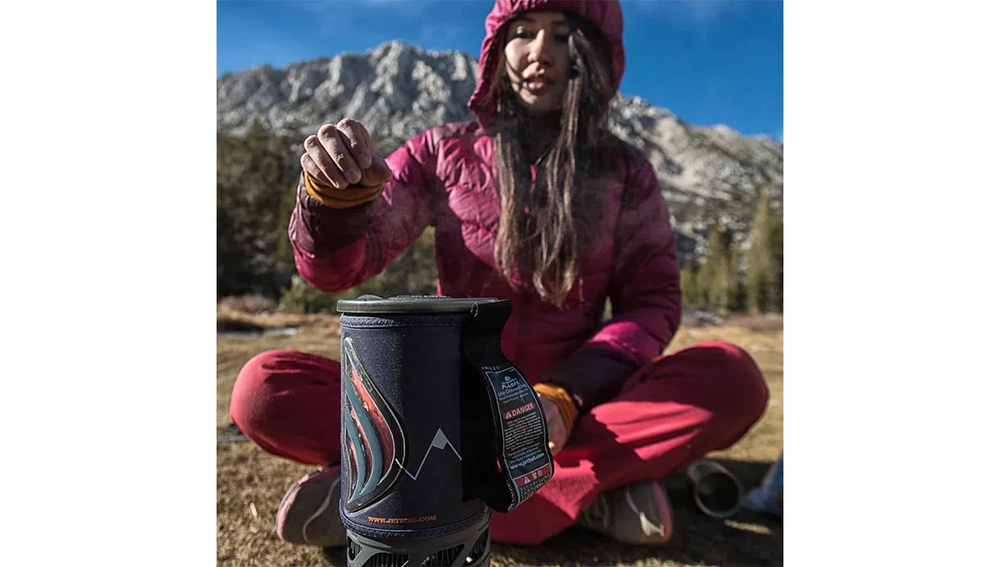 Compatible Jetboil accessories, such as a coffee press, hanging kit, pot support, skillet, FluxRing cooking pot, and utensils make this a necessity for your next backpacking adventure. Includes fuel canister stabilizer; bottom cup doubles as a measuring cup and a bowl; easy to pack and carry at only 13.1 ounces.