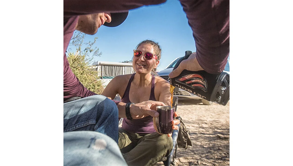 Blistering boil times come standard on the Flash personal cooking system, the ultimate camping stove for preparing coffee, soup, or dehydrated meals on the trail. Optimized for efficiency, the Flash boils water lightning-quick, making it the fastest Jetboil ever. Jetboil's 1-liter FluxRing cooking cup with insulating cozy makes boiling water—and keeping it warm—a breeze. Start heating instantly with the convenient, reliable pushbutton igniter, and verify that the water's ready with the thermochromatic color-change heat indicator.