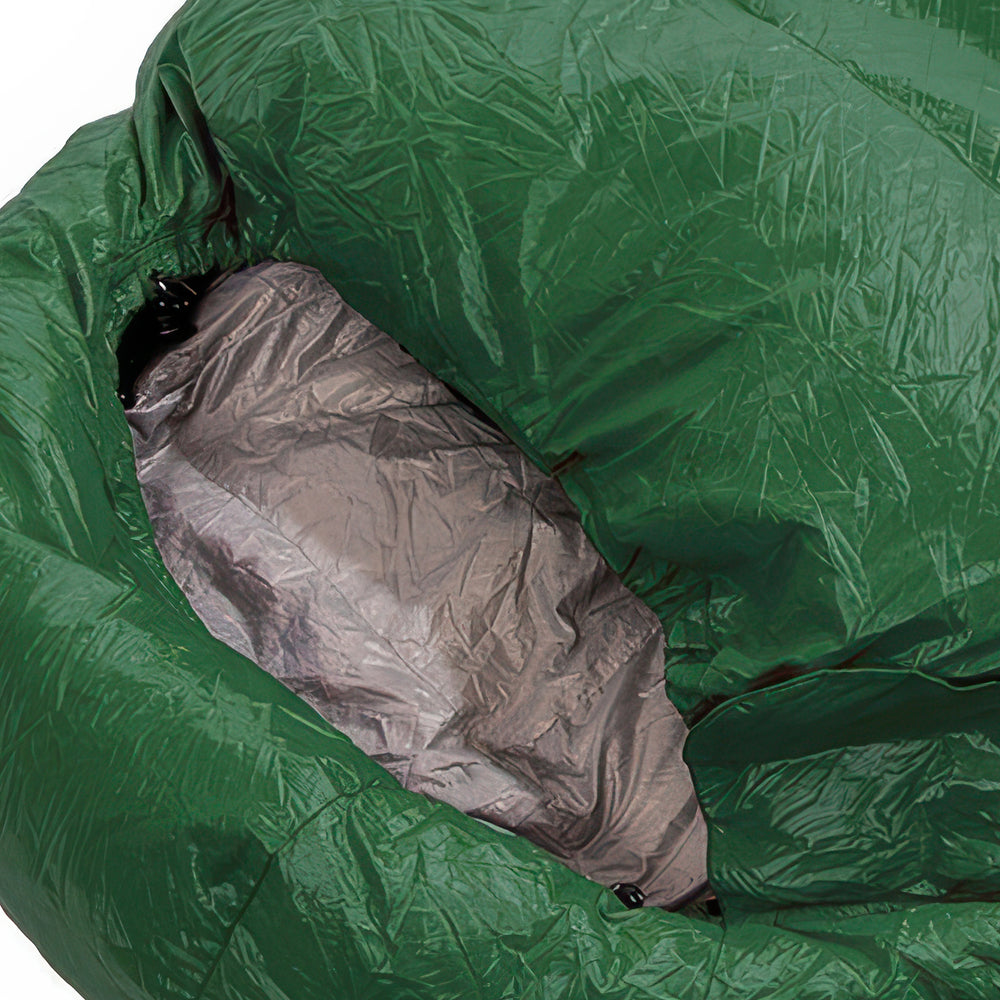 The 20D nylon outer fabric is lightweight and durable, ideal for rugged outdoor use. An anti-cold flap inside enhances thermal efficiency.