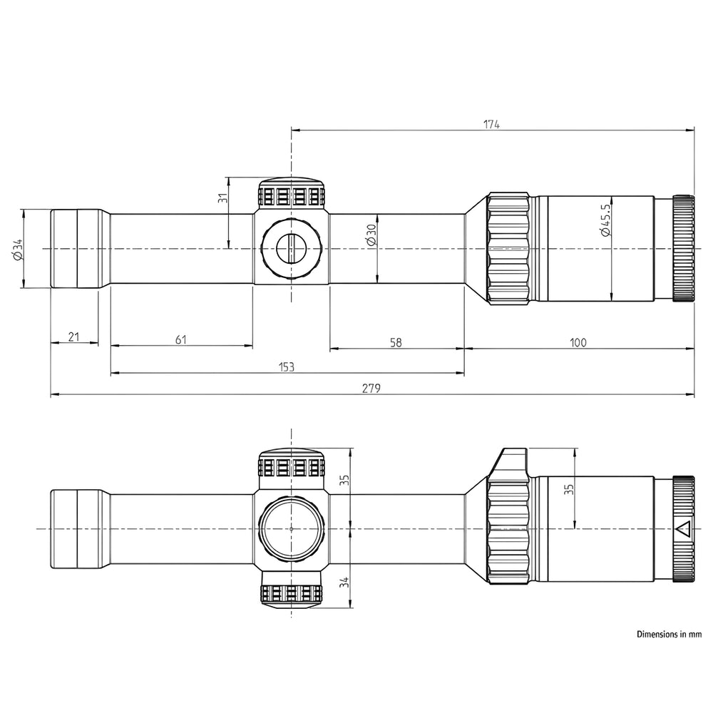 The K16i features MIL turrets with precise .1 MRAD click adjustments, allowing for fine-tuned corrections. One click moves the point of impact by 1 cm at 100 meters.