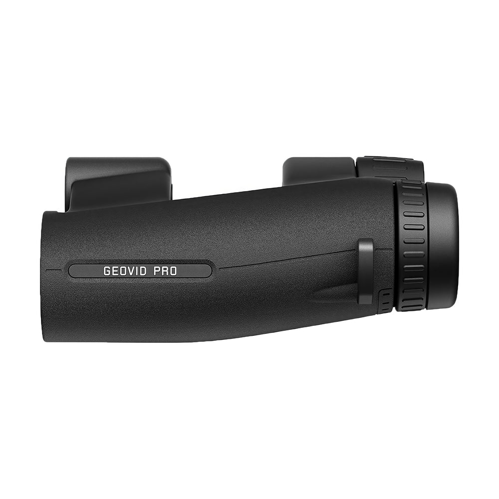 16 mm eye relief, ±4 diopter correction, and detachable four-position click-stop rubber eyecups make the Geovid Pro easy to use with or without glasses. The slip-resistant center focus wheel ensures smooth adjustments even with gloves on.