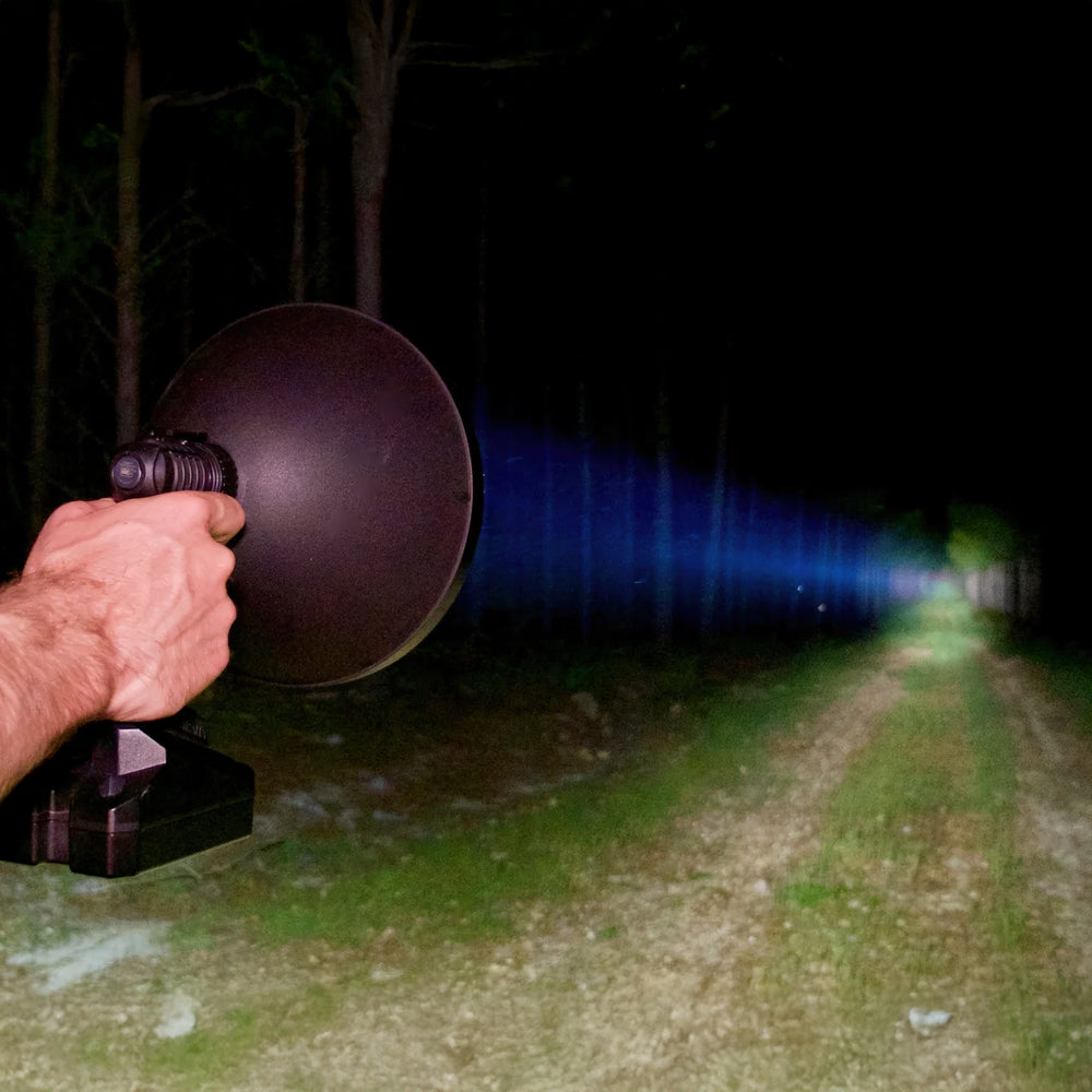 The parabolic reflector combined with an integrated focusing mechanism allows you to adjust from a wide pattern to a long-distance spot.