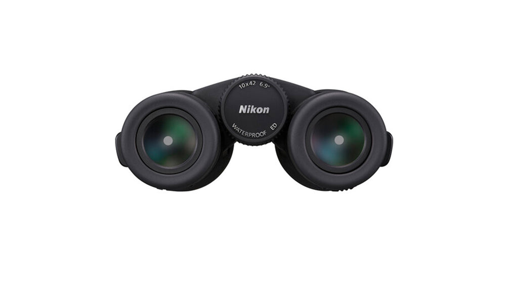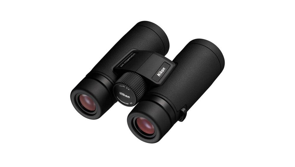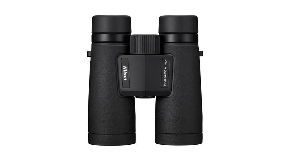 Boasting a wide viewing angle that presents an immersive viewing experience, Nikon's black 10x42 Monarch M7 Binoculars have improved design features compared to previous iterations, with the same focus on comfort and performance the line is known for. Featuring extra-low dispersion glass elements with anti-reflection fully multicoated optics and highly reflective dielectric-coated, phase-corrected roof prisms, complemented by exterior lens coatings that repel water and oil, the Monarch M7 produces bright and clear high-contrast images with true-to-life color and minimal color fringing.