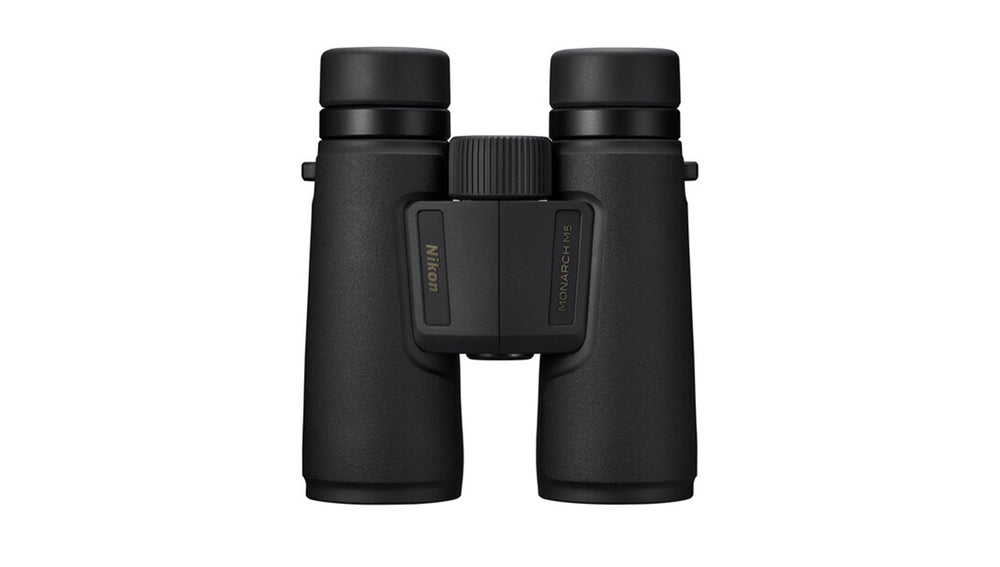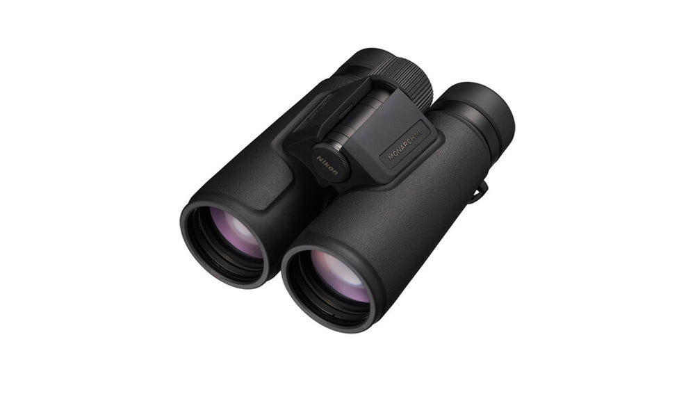 Improving on their previous Monarch 5 design, Nikon's black 10x42 Monarch M5 Binoculars benefit from a wider field of view to present you with a more immersive observational experience with the same focus on comfort and performance the line is known for. Featuring extra-low dispersion glass elements with anti-reflection fully multicoated optics and highly reflective dielectric-coated, phase-corrected roof prisms, the Monarch M5 produces bright and clear high-contrast images with true-to-life color and minimal color fringing.
