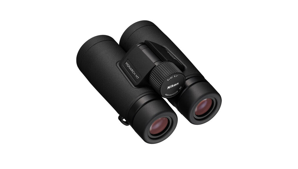 Boasting a wide viewing angle that presents an immersive viewing experience, Nikon's black 8x42 Monarch M7 Binoculars have improved design features compared to previous iterations, with the same focus on comfort and performance the line is known for. Featuring extra-low dispersion glass elements with anti-reflection fully multicoated optics and highly reflective dielectric-coated, phase-corrected roof prisms, complemented by exterior lens coatings that repel water and oil, the Monarch M7 produces bright and clear high-contrast images with true-to-life color and minimal color fringing.
