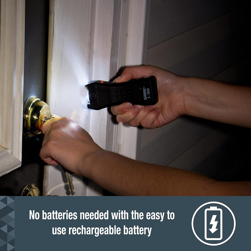 Equip yourself with the Sabre Red 1.600 UC Mini Stun Gun, a powerful yet compact device designed for personal safety. This mini stun gun combines a high-intensity LED flashlight and a potent electric shock in a device that fits easily into your pocket or purse. With its built-in safety features and easy-to-use design, it is an ideal choice for anyone looking to enhance their personal security discreetly. The Sabre Red Mini Stun Gun delivers a powerful electrical charge, measured at 1.600 microCoulombs (µC), to ensure maximum effectiveness in stopping potential threats. Its integrated LED flashlight provides not only a bright light source in dark environments but also serves as a disorienting tool against attackers. Compact and lightweight, this stun gun is equipped with a belt holster for easy access, ensuring you’re always prepared in any situation.