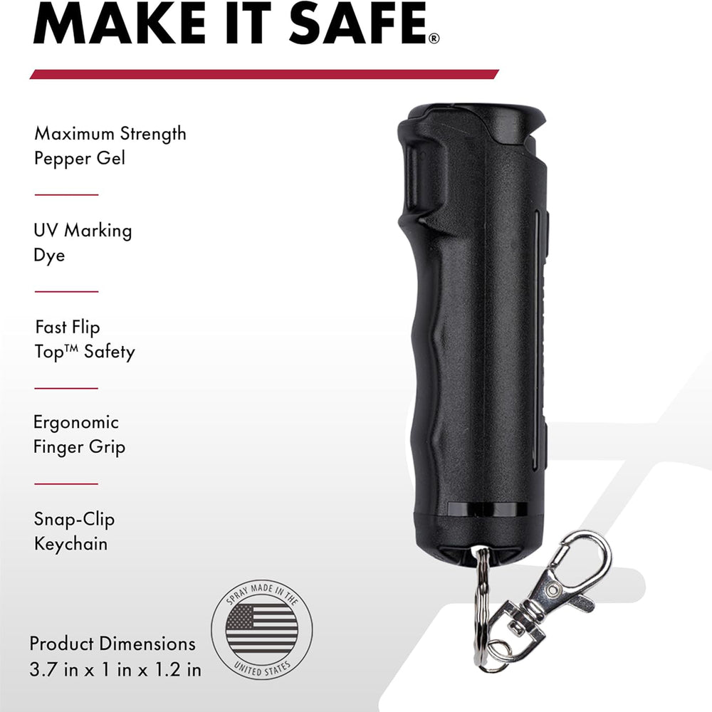 This Pepper Gel is equipped with a Fast Flip Top for quick and easy access, ensuring maximum strength OC spray when seconds count. Designed to prevent accidental discharge, the ergonomic flip-top design keeps you protected when it's most needed.