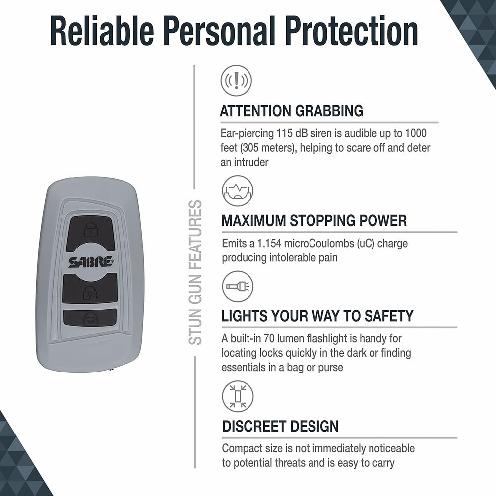 The SABRE Stun Gun is designed to be a comprehensive safety device that fits discreetly into your daily life, whether tucked in a purse or carried by hand with its wrist lanyard. Its small size and robust features make it a reliable companion in uncertain situations.