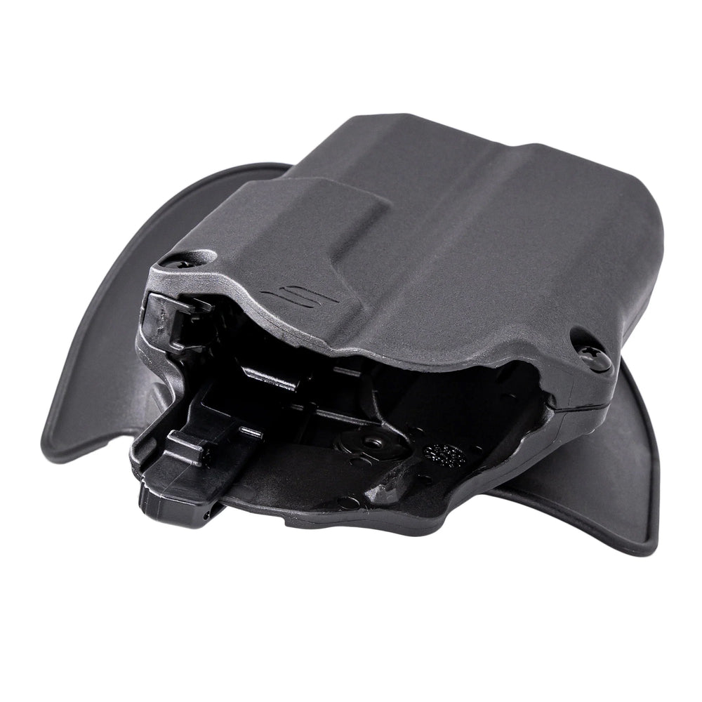 Built for durability and adaptability, the Solis holster features a reinforced two-piece body for added strength. The open muzzle design accommodates threaded barrels and ensures easy debris removal, while its advanced non-marking nylon construction protects your firearm’s finish. Whether for professional or recreational use, the Safariland Solis holster offers an exceptional blend of function, comfort, and style.