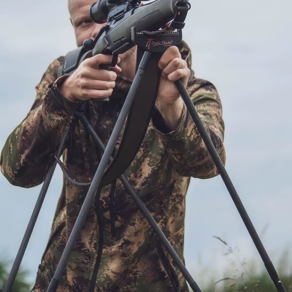The Stable Stick Ultimate Carbon Stand/Kneel Shooting Stick is designed to offer unmatched stability during standing shots. Its innovative four-legged design ensures that your rifle remains steady, significantly improving shooting accuracy.