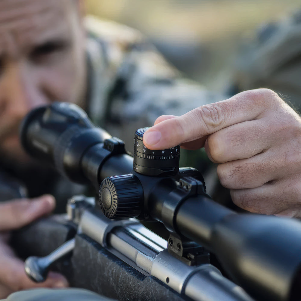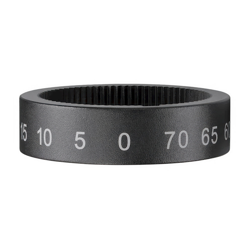 The pre-engraved graduated ring for the elevation turret features 70 clicks, covering the entire adjustment range. This makes it ideal for use with trajectory tables, ensuring precise, easy-to-read markings.