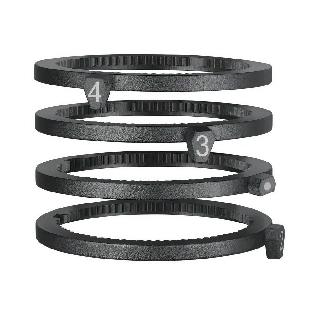 The BTF can be assembled using four narrow rings—out of six supplied—allowing you to set your own markings for four important distances with the help of a ballistic program.