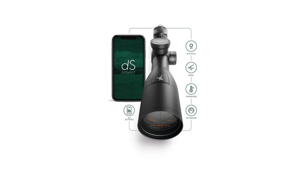 The Swarovski dS Gen II 5-25x52 Riflescope - 4A-I Reticle is the perfect partner for medium to long-range hunters, with none of the guesswork thanks to the advanced automatic aim point display, and dS Configurator App. The dS Gen II 5-25x52 Riflescope is packed with a suite of electronics and tools to get you on target, starting with an integrated laser rangefinder and inclinometer, and automatically displays the correct aiming point and all the data you need in real time. At no point do you need to manually adjust your turrets, so your rifle remains properly zeroed at all times.