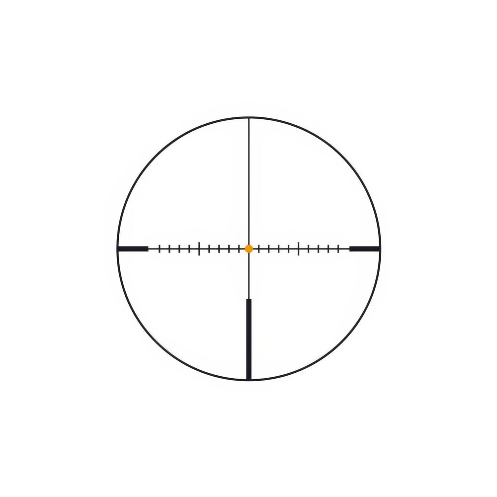 Impact point correction per click is 0.36 inches at 100 yards, providing fine-tuned accuracy. Both elevation and windage adjustment ranges are extensive, supporting accurate targeting over long distances.