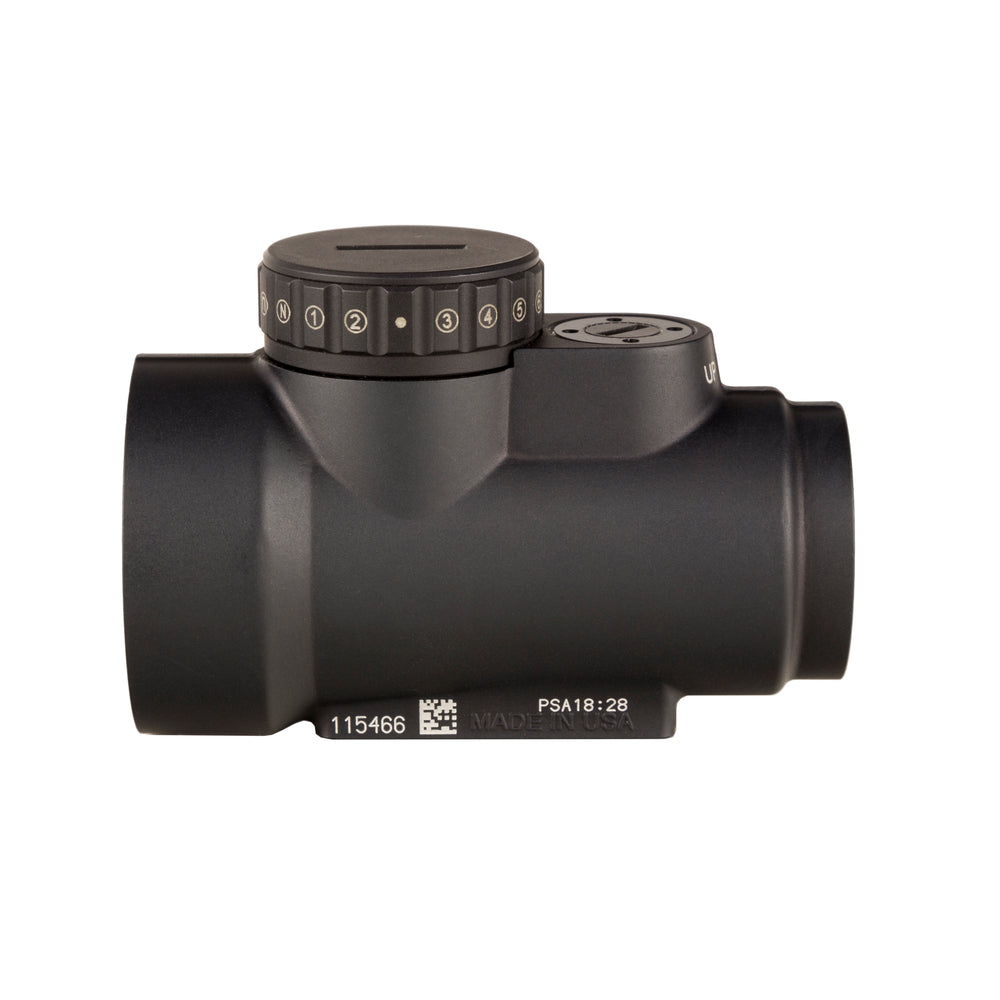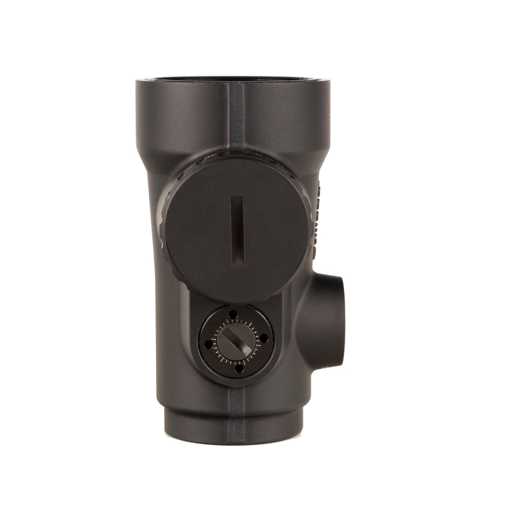 The brightness dial is easily accessible for both left- and right-handed operators, ensuring seamless operation without removing hands from the firearm.