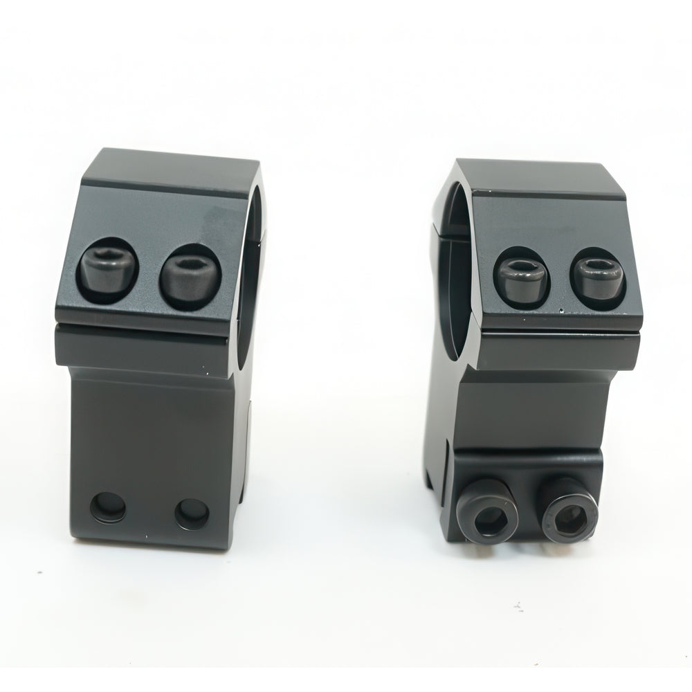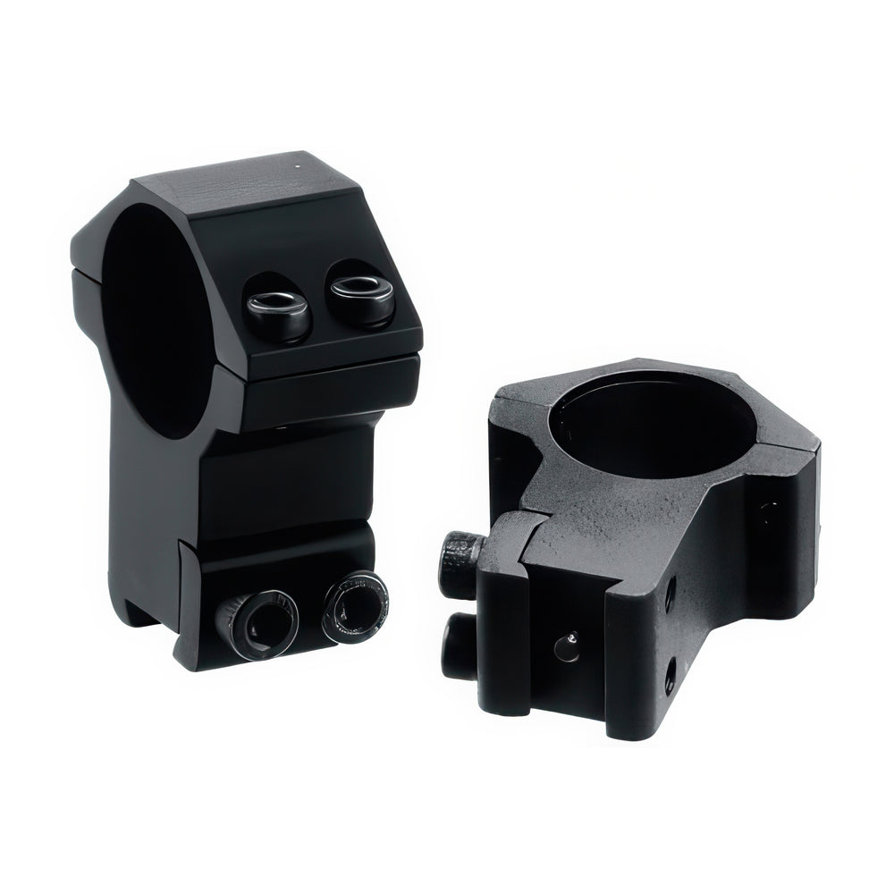 The ring bases are equipped with locking hex screws that allow for a tight and reliable fit on dovetail dimensions. A reversible locking plate enhances compatibility, ensuring these rings can adapt seamlessly to a wide range of airguns and .22 rails.