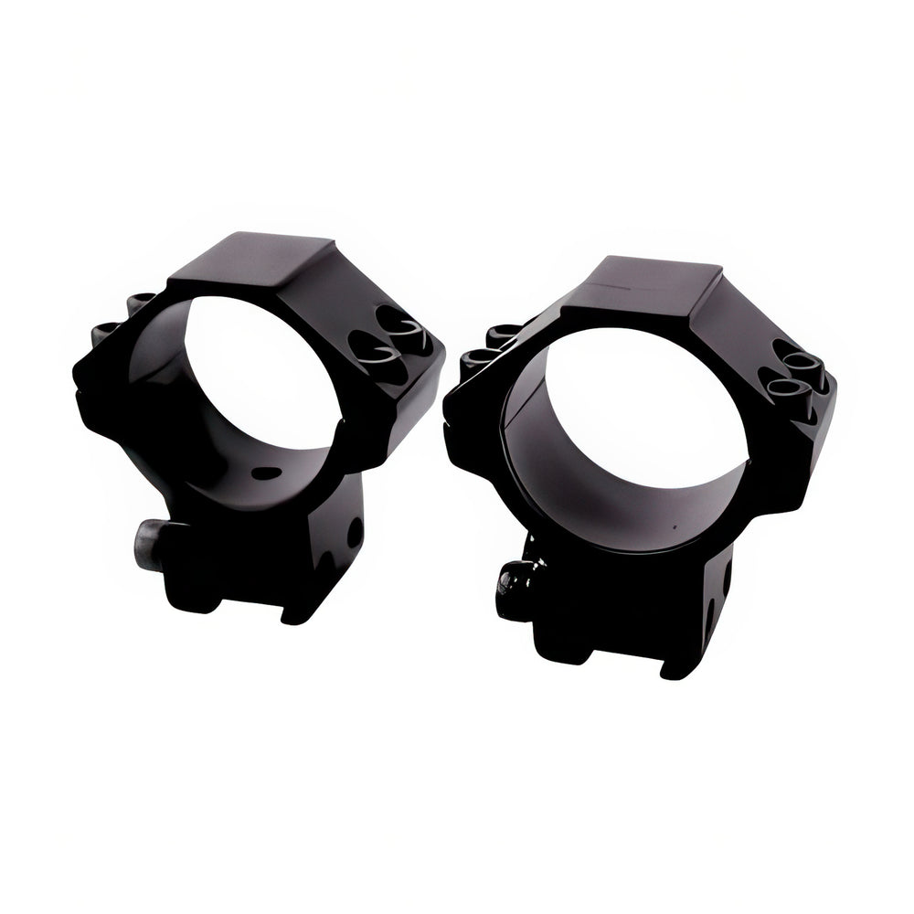 These scope rings feature a medium-height profile, allowing for an ideal balance between optic clearance and stability. The locking hex screws and reversible locking plate offer an uncompromising fit on dovetail rails, while the included stop-pin ensures a rock-solid application for demanding shooting conditions.
