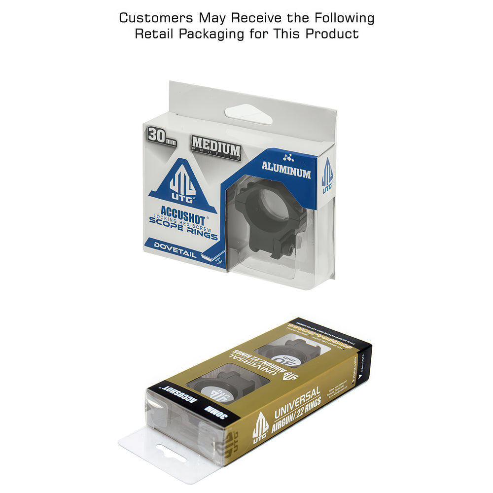 • Ring base designed with locking hex screws for a secure fit on airgun/.22 dovetail dimensions.