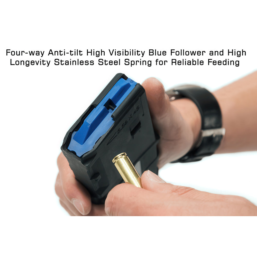 Designed with user convenience in mind, the magazine boasts a high-visibility blue anti-tilt follower and a premium stainless steel spring for smooth and reliable feeding.