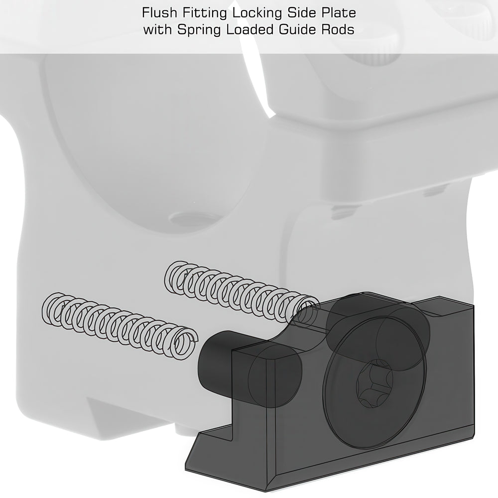 • Patented P.O.I locking plate featuring a flush-fitting low-profile steel locking side plate for a secure and repeatable zero hold.