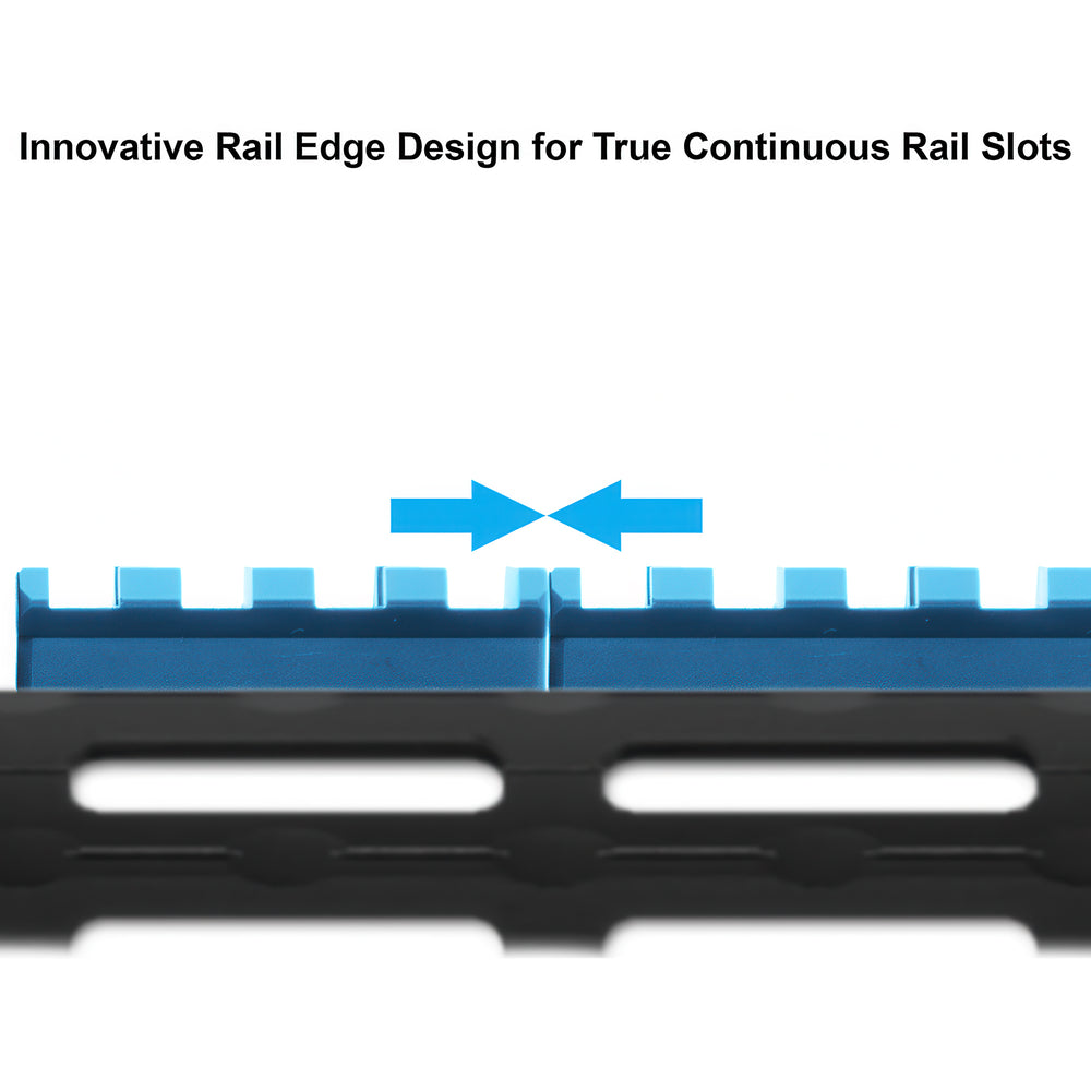 Proudly made in the USA, this rail section features a 6061-T6 aluminum construction with a matte black anodized finish, ensuring exceptional durability and a sleek aesthetic.