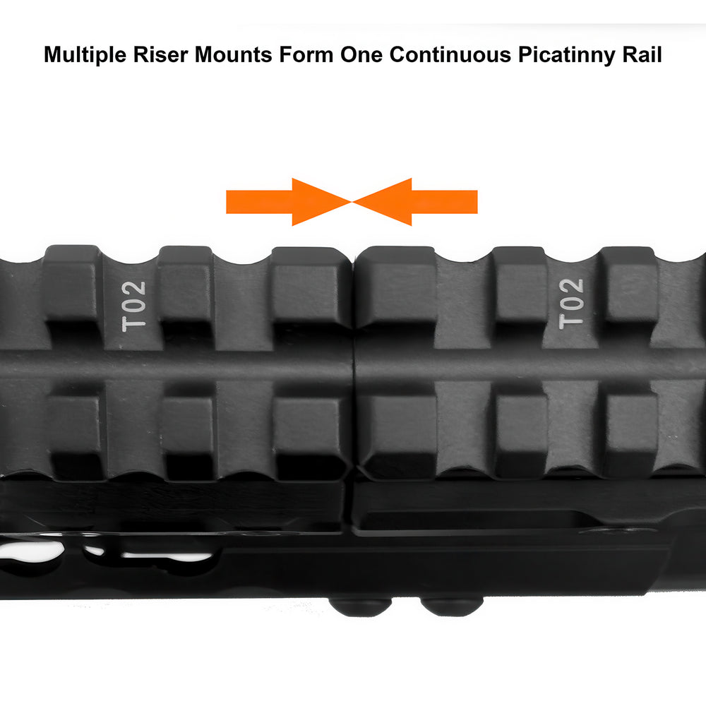 With its ultra-lightweight design and durable 6061-T6 aircraft-grade aluminum construction, this riser mount ensures reliable performance for mounting optics with ease and accuracy. The sleek black matte anodized finish enhances both the durability and aesthetic appeal, making it a professional-grade choice for shooters and enthusiasts alike.