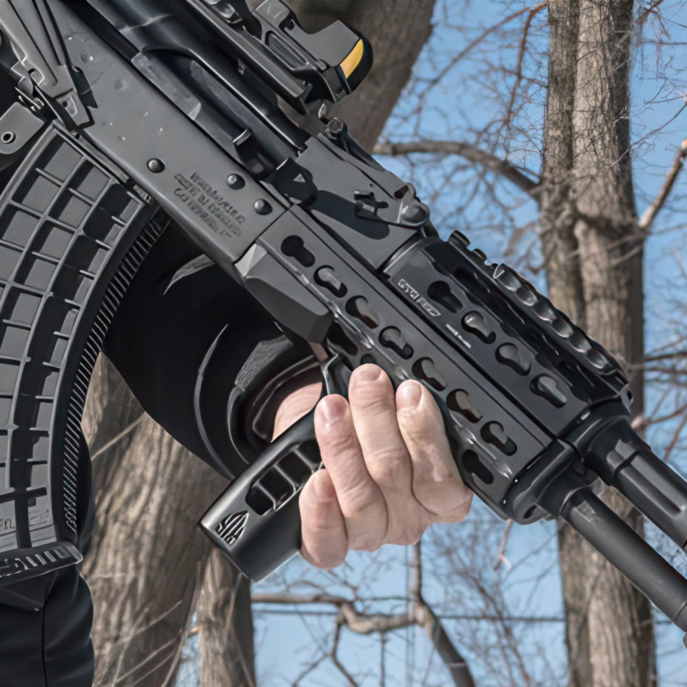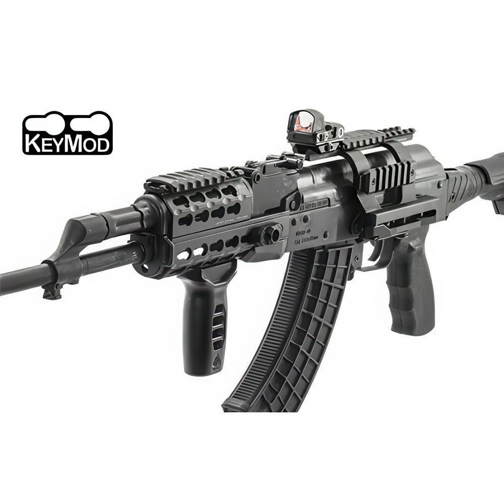 Designed specifically for Keymod systems, this foregrip combines lightweight aircraft aluminum construction with a sleek and compact profile, ensuring reliability and durability.