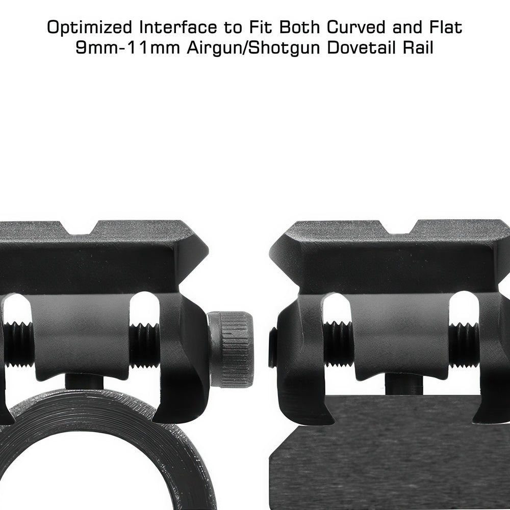 Its precision-engineered design ensures a seamless fit with 9mm-11mm airgun and shotgun dovetail rails, making it an ideal choice for mounting a wide range of optics and accessories.
