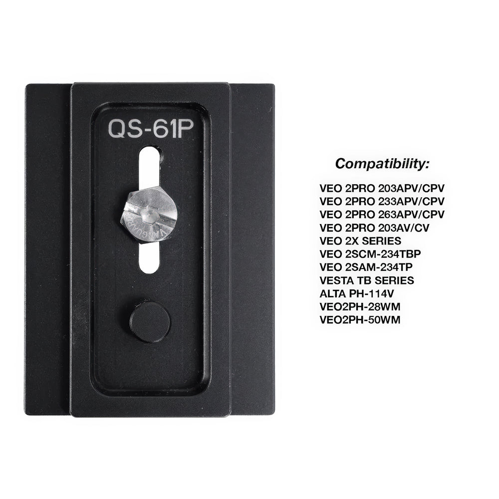 Ideal for professional and amateur use, this plate includes an adjustable 1/4”-20 screw and a video locating pin for perfect alignment and balance. The QS-61 is compatible with multiple Vanguard heads, making it an essential tool for seamless camera transitions and quicker field adjustments.