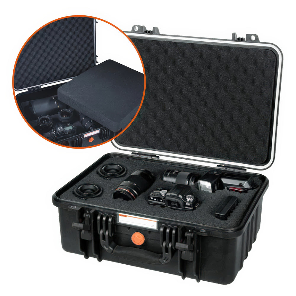 With an interior three-piece foam set, the case allows for a custom fit around your DSLR cameras, lenses, and accessories. Its reinforced steel lock holders, automatic pressure valve, and anti-slip rubber feet enhance both security and convenience. Built with a cushioned handle and quick-release latches, the Supreme 40F is ideal for photographers, field operators, and adventurers requiring superior protection on the move.