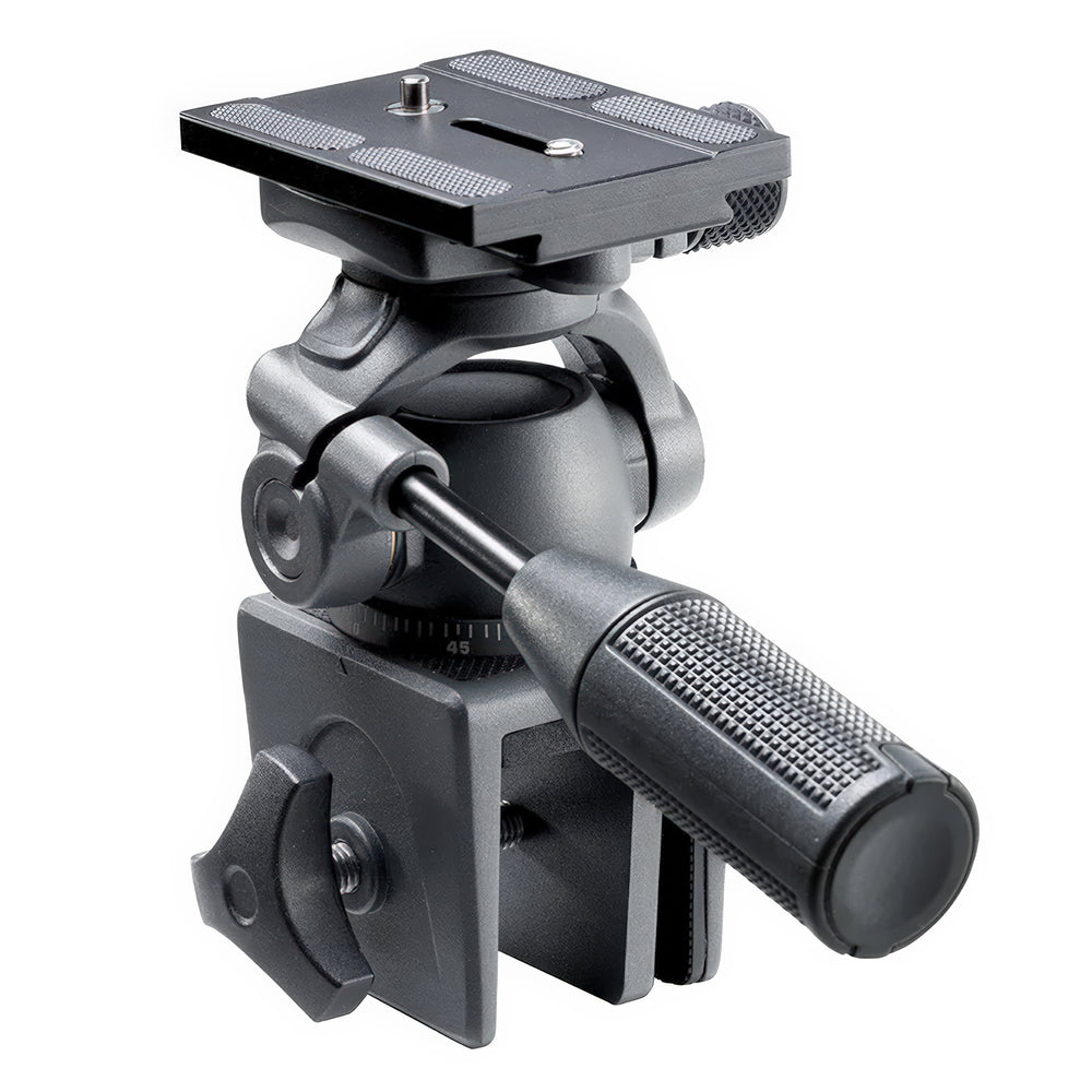 Equipped with a 2-way pan head and Arca-Swiss-compatible quick-release plate, this mount provides precise control and secure support for cameras, camcorders, and scopes up to 4kg. The sturdy clamp opens to 31mm and features a non-slip rubber face, ensuring a tight grip on windows, branches, fences, and more. A telescopic pan handle allows smooth panning and one-handed control for efficient, stable tracking.