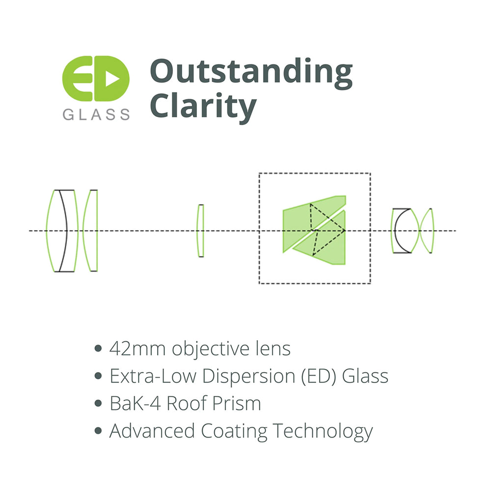 Lightweight and waterproof binoculars featuring ED glass and premium construction.