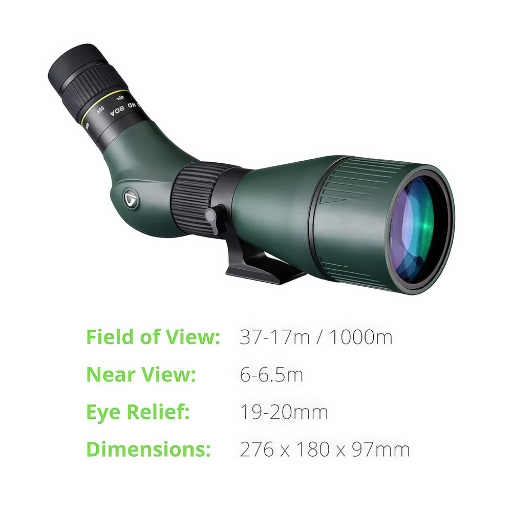 Built for serious outdoor enthusiasts, the Vanguard Veo HD 80A spotting scope offers an exceptional combination of optical performance, durable design, and lightweight construction. Its angled view and powerful 20–60x magnification make it ideal for birdwatching, nature observation, and long-distance targeting. Featuring an 80mm objective lens and fully multi-coated optics, the scope delivers crystal-clear images, even in low light conditions.