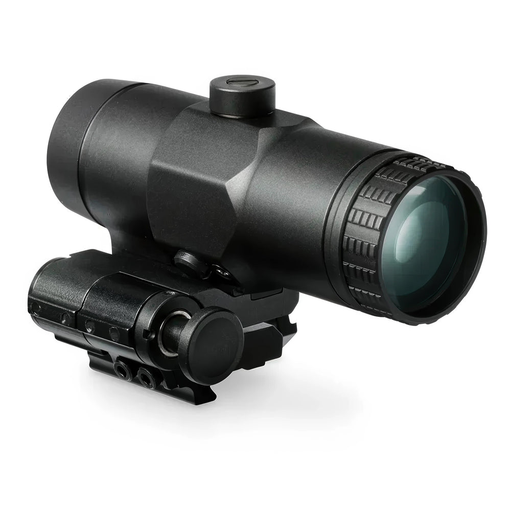 The system allows you to engage or disengage the magnifier quickly and securely, giving you 3x magnification or a standard unmagnified view whenever you need it.