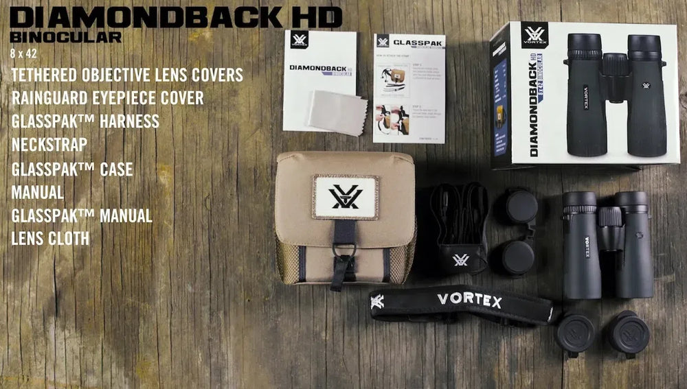 The Diamondback® HD smashes the scale of price vs performance, delivering a rock-solid optic that optically punches high above its class. The included GlassPakTM binocular harness keeps your glass close at hand, ready to deploy at a moment's notice, all while providing protection and significantly more comfort than traditional neck straps.