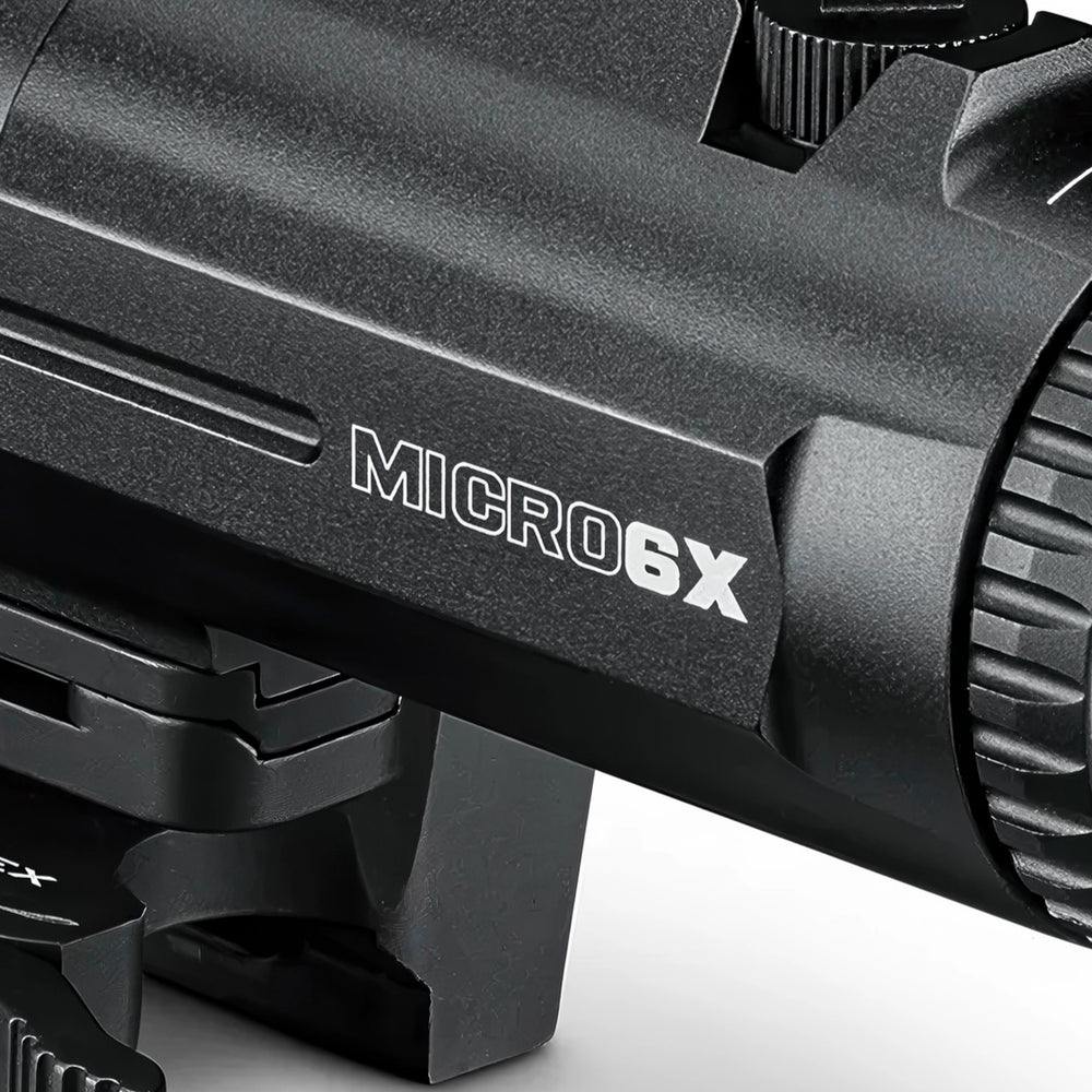 Designed for competition and combat, the Micro6x provides a tactical edge with a patented cam-lock system that allows for quick transitions and enhanced visual detail.