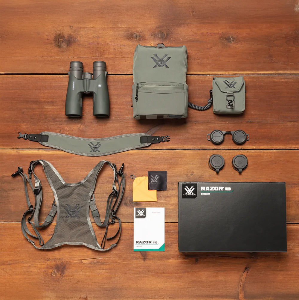 Experience the unparalleled clarity and spectacular brightness with Vortex Razor UHD 12x50 Binoculars, engineered for the avid outdoor enthusiast. These binoculars deliver high-definition optical performance, ensuring that no detail goes unnoticed, whether you’re bird watching or hunting in challenging conditions. With their rugged construction and ergonomic design, they provide both durability and comfort, making them the perfect companion for long days in the field. The Razor UHD series stands out with its UHD Optical System that offers sharper and more colorful imaging. The APO Chromatic lenses correct color across the entire visual spectrum, and the XR™ Plus Lens Coatings maximize light transmission, enhancing your viewing experience in low-light conditions. Each pair is O-ring sealed for waterproof and fogproof performance, ensuring reliable use in all environments.