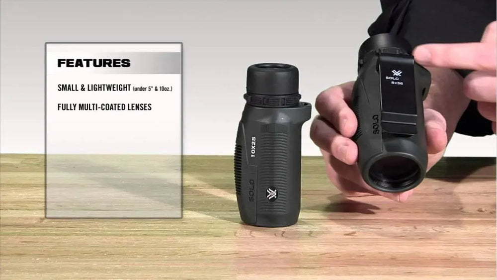 The Solo® monocular delivers quality viewing for outdoor enthusiasts who wish to bring nature a bit closer. With models that weigh between 5.6 ounces and 9.7 ounces, this monocular is ultra-compact. From bow hunters to backpackers, the Solo makes a great addition to any gear list.
