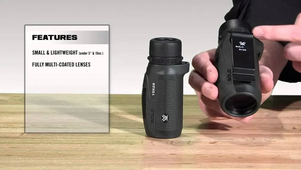 The Solo® monocular delivers quality viewing for outdoor enthusiasts who wish to bring nature a bit closer. With models that weigh between 5.6 ounces and 9.7 ounces, this monocular is ultra-compact. From bow hunters to backpackers, the Solo makes a great addition to any gear list.