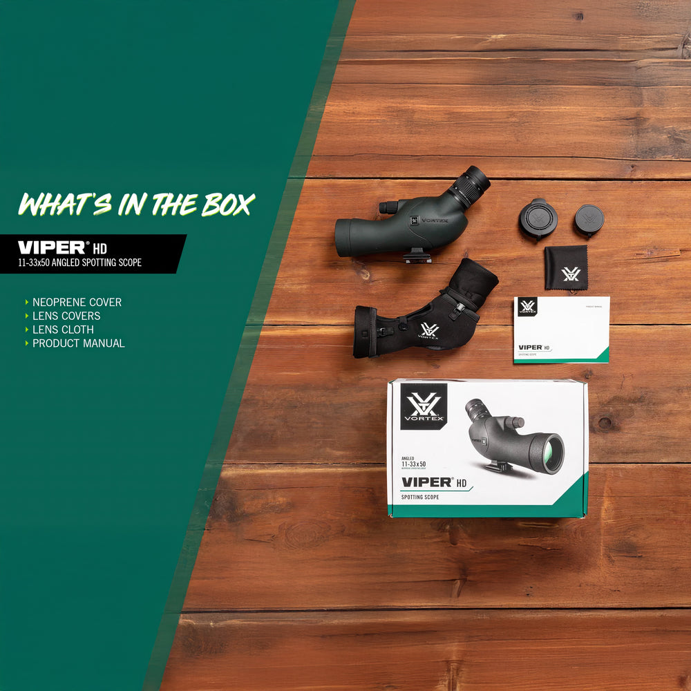 Multi-layered dielectric prism coatings deliver clear, color-accurate images. Combined with a compact design, this makes the Viper HD Spotting Scope a solid companion for all-day fieldwork.