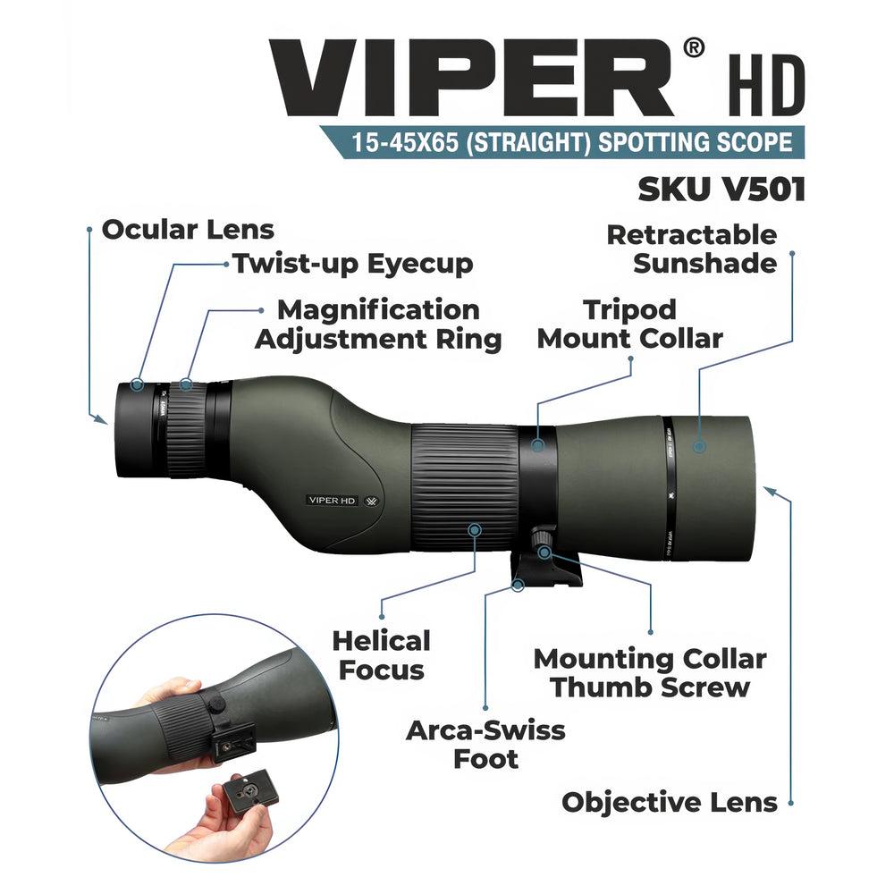 Ultra-rugged and built for harsh environments, the Viper® HD spotting scope provides clarity and confidence wherever the hunt takes you.